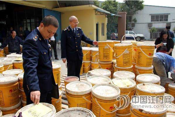 3月26日,江門市工商局蓬江分局接到廣東自然涂化工有限公司的投訴,稱江門市某涂料有限公司涉嫌偽造其旗下“杜克”品牌產(chǎn)品。接到舉報(bào)后,蓬江分局經(jīng)濟(jì)檢查股及杜阮工商所執(zhí)法人員立刻帶隊(duì)趕赴現(xiàn)場,依法查扣涉嫌違規(guī)產(chǎn)品444桶,共計(jì)12432kg,涉案金額24萬多元。