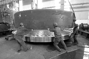 針對國內化工裝備市場持續低迷、競爭激烈、產品毛利潤普遍下的狀況,南化公司化機廠以創新為驅動力,加大高端裝備研制力度,全方位提升企業品質,確保實現2013年效益考核指標。圖為車間職工正在對乙二醇反應器進行管板與筒身連接。