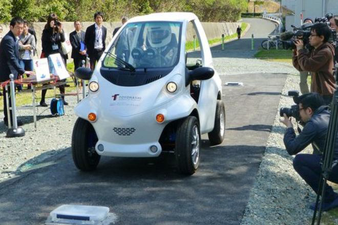 鎹姤閬擄紝榪欐鐢靛姩杞﹀湪鏃ユ湰鐖辯煡鍘夸赴妗ュ競榪涜嫻嬭瘯銆傜數鍔ㄨ濺鐨勮疆鑳庡祵鍏ュ叿鏈変紶瀵肩數鍔涘姛鑳界殑閽㈢嚎錛岀數姘斿寲杞﹂亾鍩嬪叆閫氱數閽㈡澘錛岃繖鏍風數鍔ㄨ濺琛岄┒鍦ㄧ數姘斿寲杞﹂亾涓婂氨鍙幏寰楃數鍔涳紝浠庤岄┍鍔ㄧ數鍔ㄨ濺銆?br />