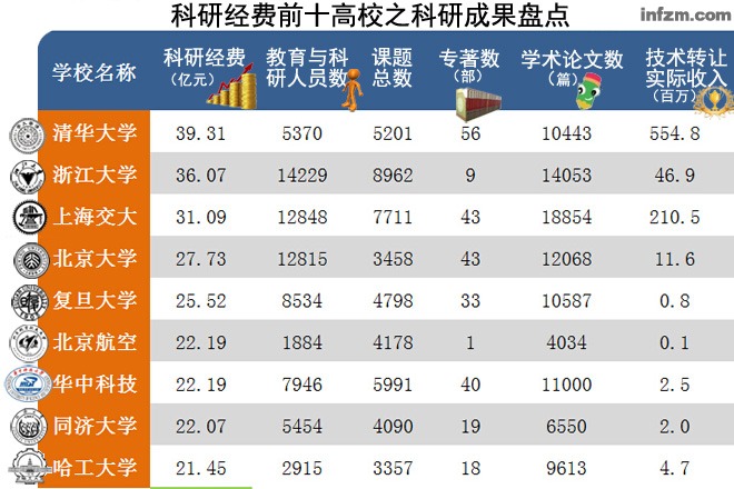 科研經費前十高校之科研成果盤點