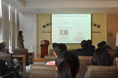 舒婕副研究員的報告是固體核磁共振技術及其化學與材料研究中的應用,報告里介紹了固體核磁常規實驗的準備及一維譜圖的分析,并通過多個實例來展示SSNMR技術在化學和材料研究中的應用價值。
