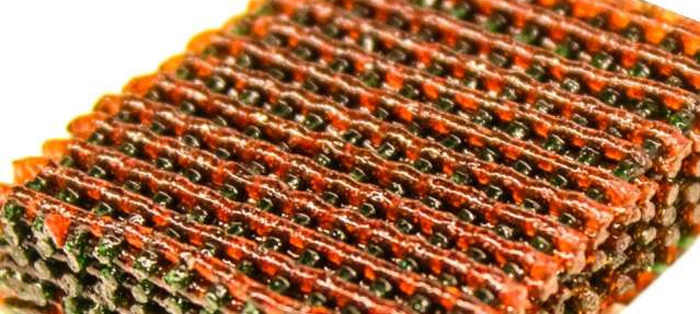 圖片顯示了3D打印材料的開放晶格模型,材料的不同顏色表明了不同的強度及靈敏度。