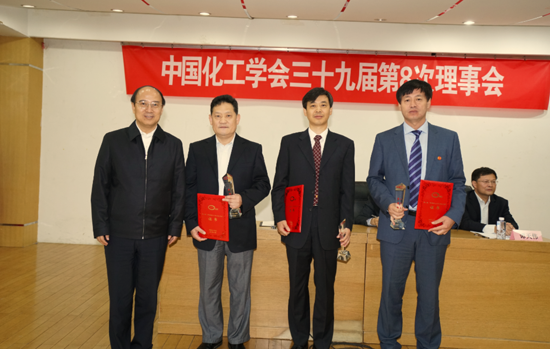 頒獎典禮上,中國化工學會理事長,中國石油化工集團公司總經理、董事、黨組副書記戴厚良為中國石化石油化工科學研究院宗保寧等3位同志頒發了“侯德榜化工科技成就獎”。