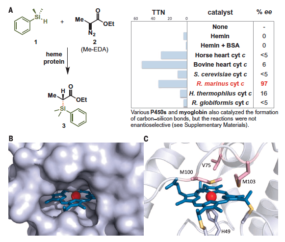 論文標(biāo)題:Directed evolution of cytochrome c for carbon-silicon bond formation: Bringing silicon to life