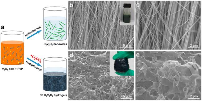 a)H2V3O8水凝膠和納米線的合成機理圖;