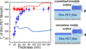 ▲非晶態PET薄膜和“兩相”PET薄膜玻璃化溫度的厚度依賴性