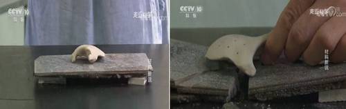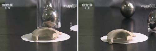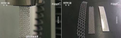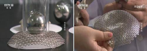 為了更好的看清鈦網板與PEEK材料的差異,記者和西安康拓醫療胡立人做了一系列的實驗。在外來沖擊實驗中,鈦網在受到金屬球的撞擊后明顯砸了一個坑,而由聚醚醚酮材料制成的骨板卻絲毫沒有發生變形。