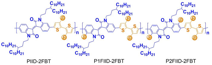 最近,華中科技大學王帥教授課題組和中國科學院化學研究所郭云龍研究員/劉云圻院士團隊合作,在Advanced Materials 上發表論文,報道了一類高性能的雙極性聚合物半導體材料。他們利用二氟連二噻吩(2FBT)單元和含有不同氟原子的異靛藍(IID)基團共聚,合成了三種氟原子數量依次增加的聚合物 (圖1)。