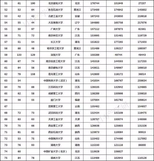 不過從下表就可以看出,其實前20強的變化不是很大,基本上大家都在20強之內,比較穩定,也不難看出,其實前20強的高校,基本上都是綜合類大學比較占有優勢;