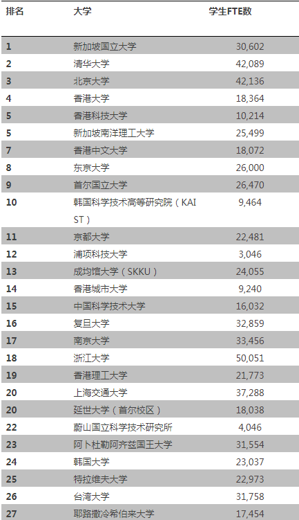 2018泰晤士亞洲大學排名TOP100