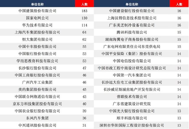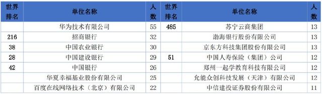 流向較多的企業除了華為、BAT等互聯網公司外,還包括中國工商銀行、中國農業銀行等金融機構以及國家電網等國有企業。