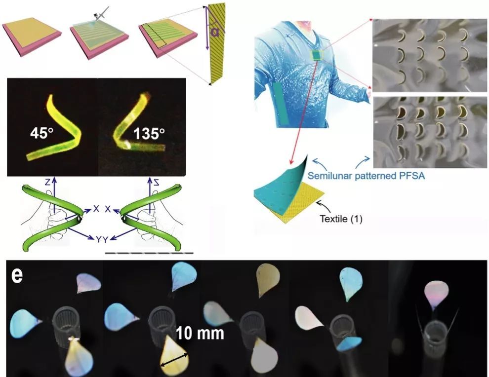(體表濕熱調(diào)節(jié)智能布料及變形-變色雙響應(yīng)薄膜研究示意圖)