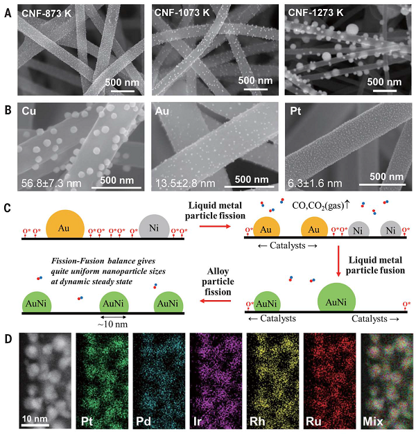 Science封面: 基于碳熱震蕩的合成方法,實現了集成8種元素的高熵值、單相合金納米顆粒在形貌、尺寸、組成的控制合成