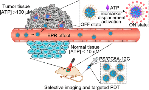 為驗(yàn)證此策略可行性,郭東升教授課題組設(shè)計(jì)構(gòu)筑了兩親杯芳烴的納米藥物載體,選擇4種代表性的商用光敏劑為模型藥物,腫瘤標(biāo)志物鎖定為三磷酸腺苷即ATP,當(dāng)光敏劑被裝進(jìn)杯芳烴“口袋”后,其熒光和光活性被完全淬滅;當(dāng)ATP濃度為腫瘤濃度時(shí),光敏劑被“激活”了,熒光和光活性幾乎完全恢復(fù);而正常組織的ATP濃度并不能造成光敏劑的釋放。