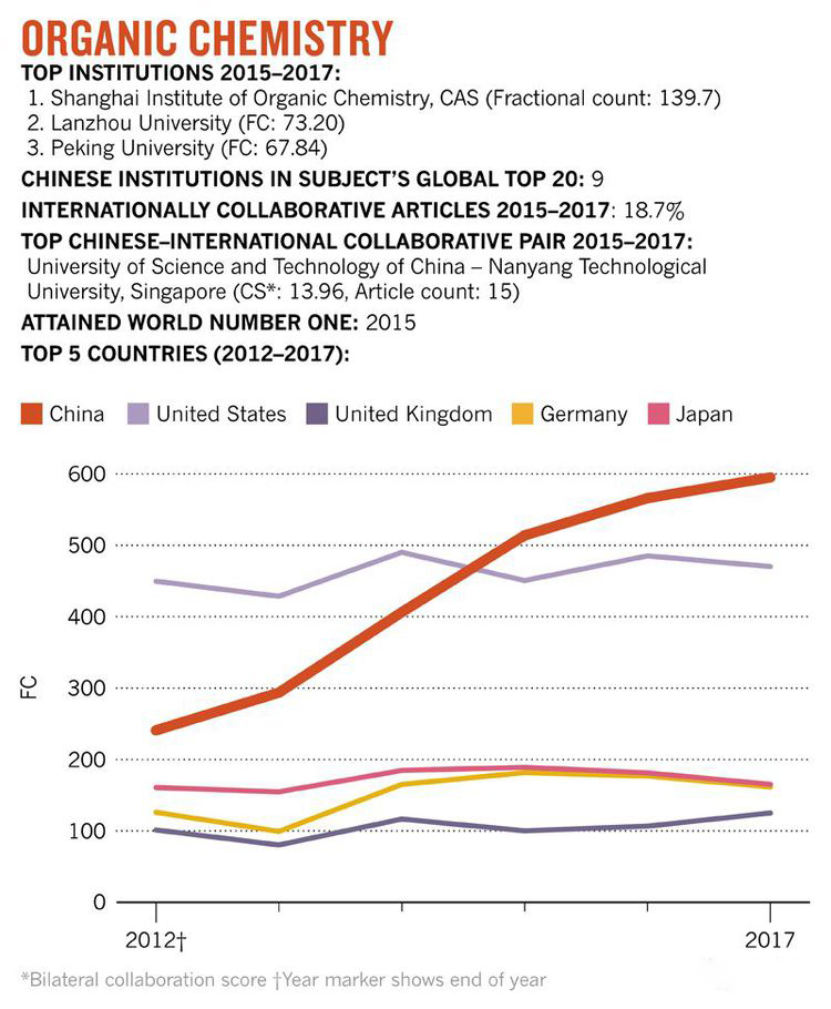 近日,2018年最新自然指數出爐,數據顯示中國最具實力的學科領域為化學,從2012年到2017年,中國在自然指數中的化學論文產出增長了84%,位列全球第二,居美國之后。