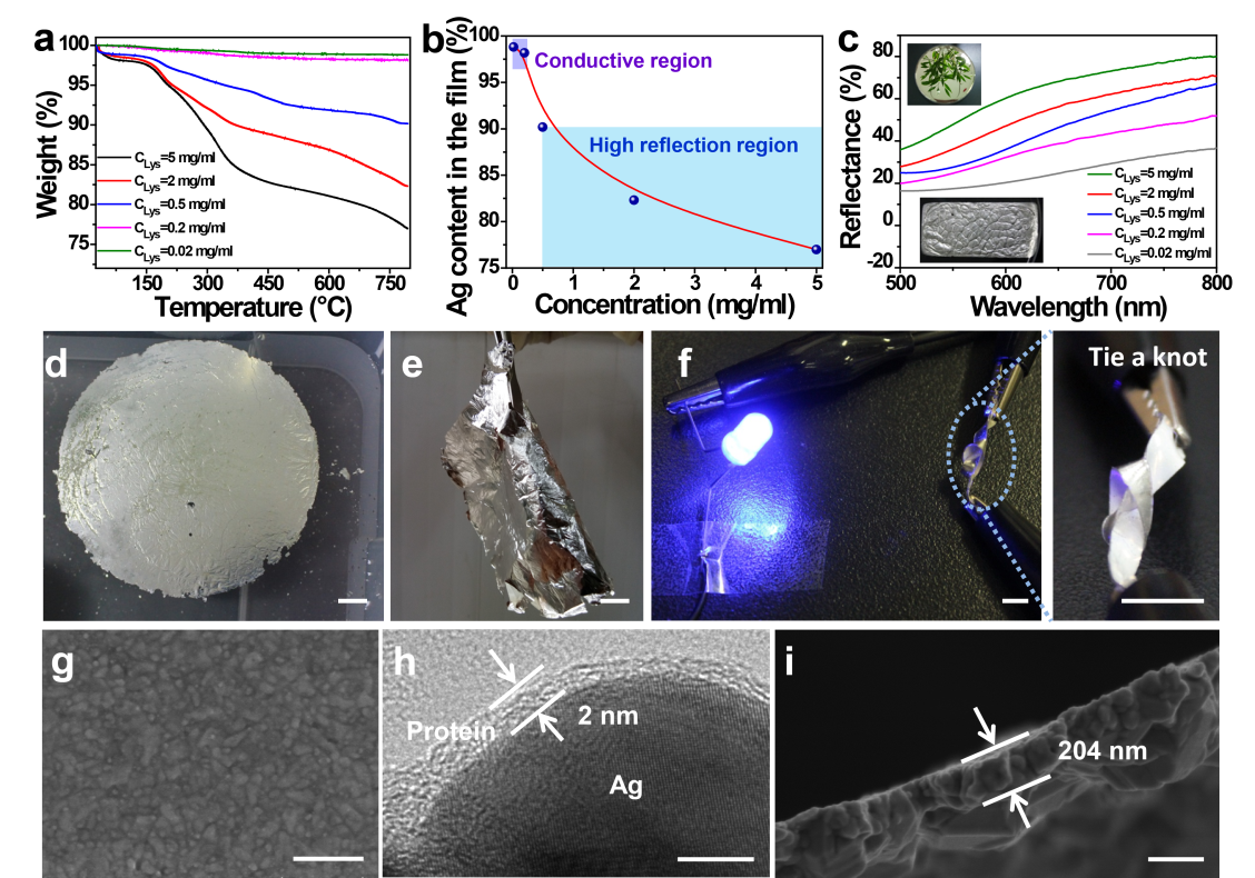 圖2.通過調節溶菌酶的濃度制備高導電性溶菌酶焊接銀薄膜。