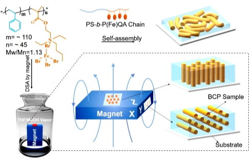 圖1. 順磁性嵌段共聚物的磁鐵控制的定向自組裝。