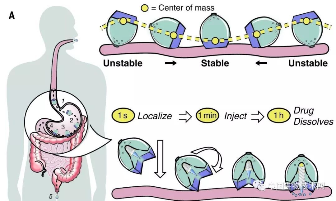 研究人員還從豹紋龜“自我復(fù)位”的能力中獲得啟發(fā),這種來自非洲的陸龜有高聳的龜甲,被翻轉(zhuǎn)后可以挺身復(fù)原,由此研究人員設(shè)計出膠囊的形狀,使其可以在胃中調(diào)整位置,保證針尖總能成功扎入胃壁。