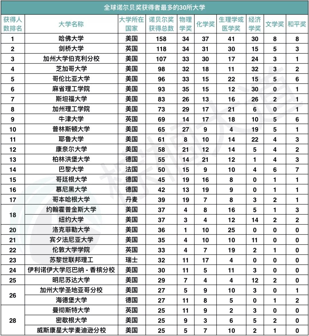 全球諾貝爾獎最多的30所大學,猜猜第一名是誰?