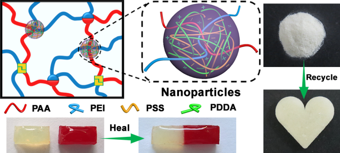 圖1. 基于聚電解質復合物的高強度自修復與可循環利用水凝膠