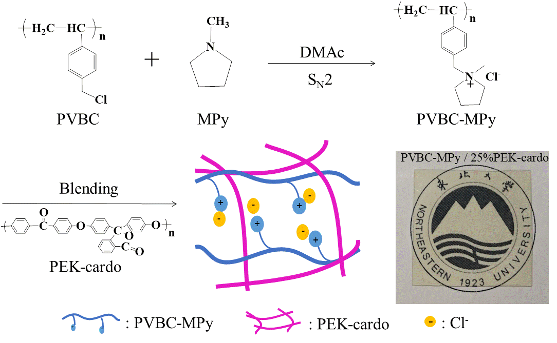 圖1. PVBC-MPy/x%PEK-cardo離子交換膜的制備