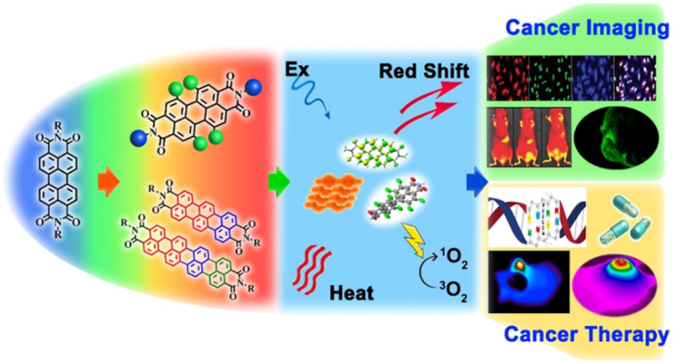 近年來,具有高穩定性的萊啉系列染料在癌癥診斷和治療領域嶄露頭角,為研發抗腫瘤材料研究帶來新的方向。尹梅貞教授研究團隊在國際權威期刊《Account of Chemical Research》上發表了題為“From Dyestuff Chemistry to Cancer Theranostics: The Rise of Rylenecarboximides”的特邀綜述論文,總結了團隊近年來在萊啉染料化學與癌癥診療領域的進展。