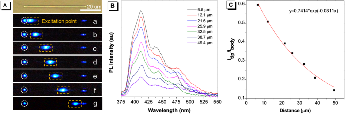 此外, TCz-F-Cm由于具有較高的固態(tài)量子效率,他們測試了它不同尺寸晶體的光波導行為,并且嘗試通過捕獲單線態(tài)和三線態(tài)激子制備白光電致發(fā)光器件。