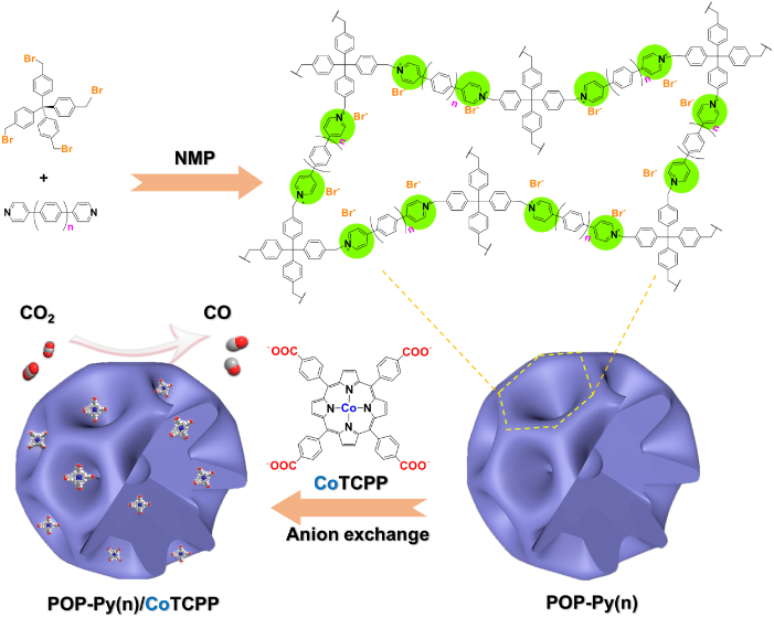 圖1 復合催化劑POP-Py(n)/CoTCPP合成示意圖