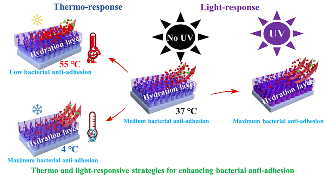 圖3 抗細菌黏附溫度響應增強機理