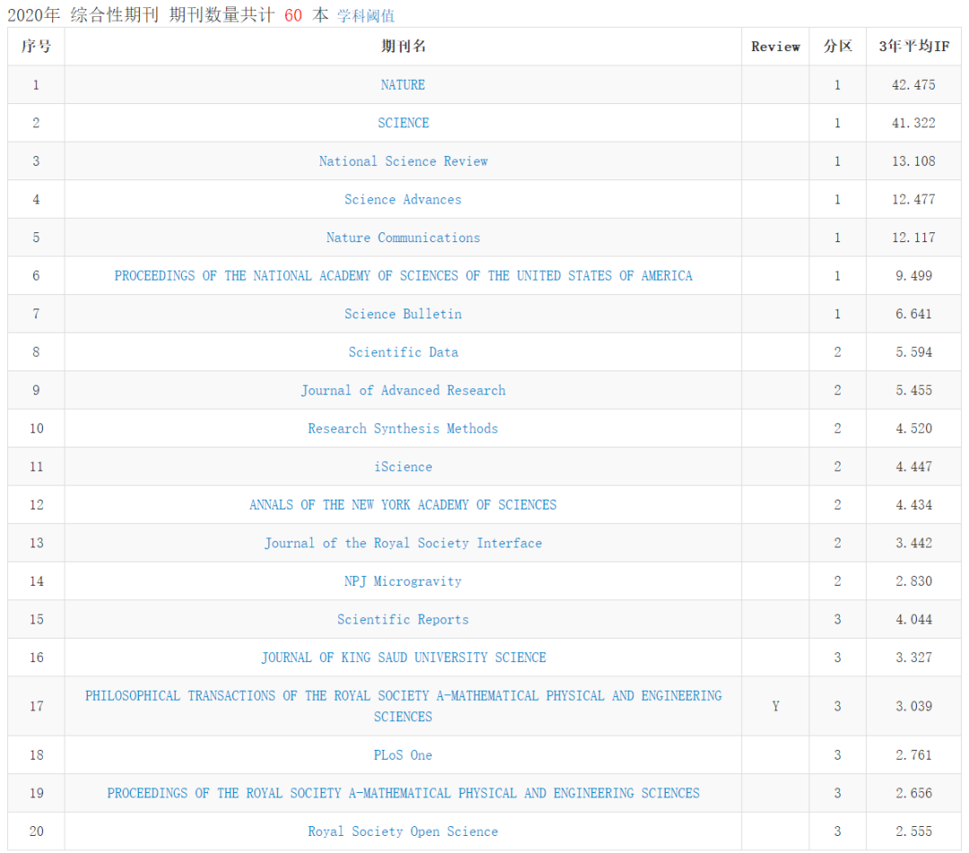 對于綜合性期刊,2020年基礎版分區表采用2019年的工作方案:先將綜合性期刊的每篇論文劃分到一級學科,然后計算每篇論文在相應學科的影響力,最后匯總整本期刊的影響力水平。