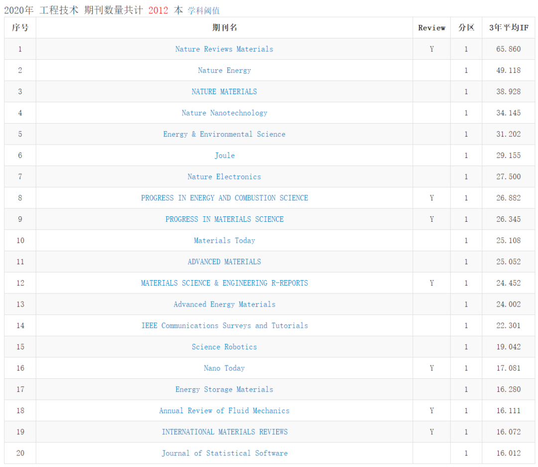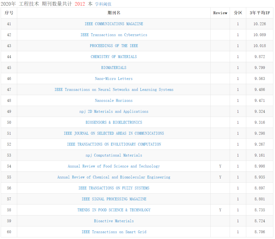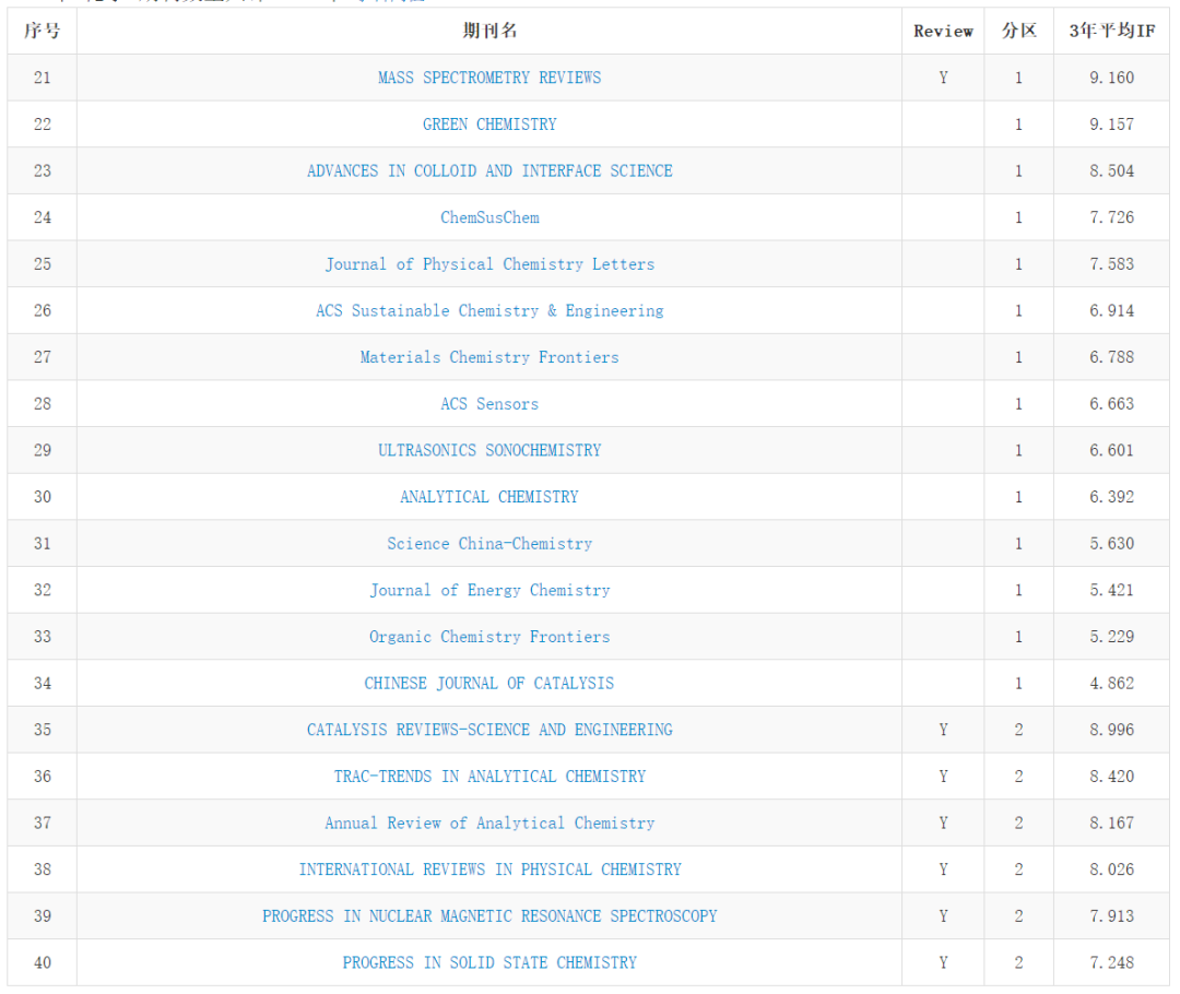 中科院期刊最新分區表發布 | 化學類/工程技術類