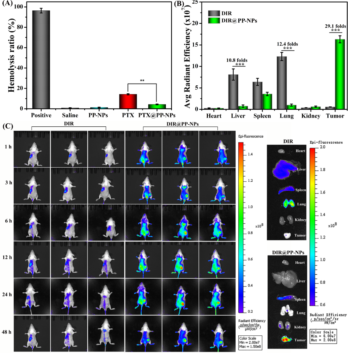 4)PP-NPs藥物載體具有良好的血液相容性,且靜脈注射后具有血液循環時間延長,腫瘤聚集率高的特點。