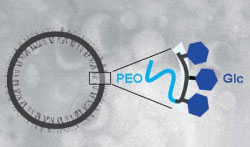 位于德國波茨坦的馬普學會膠體和界面研究所的Helmut Schlaad及其德國和瑞士同事共同完成了這項工作。他們將糖基化的聚丁二烯-聚環(huán)氧乙烷共聚物溶解在水中。在溶解時,共聚物自然地形成了稱為囊的膠體空腔,葡萄糖則附著在外表面,而聚環(huán)氧乙烷則涂覆在內(nèi)表面。