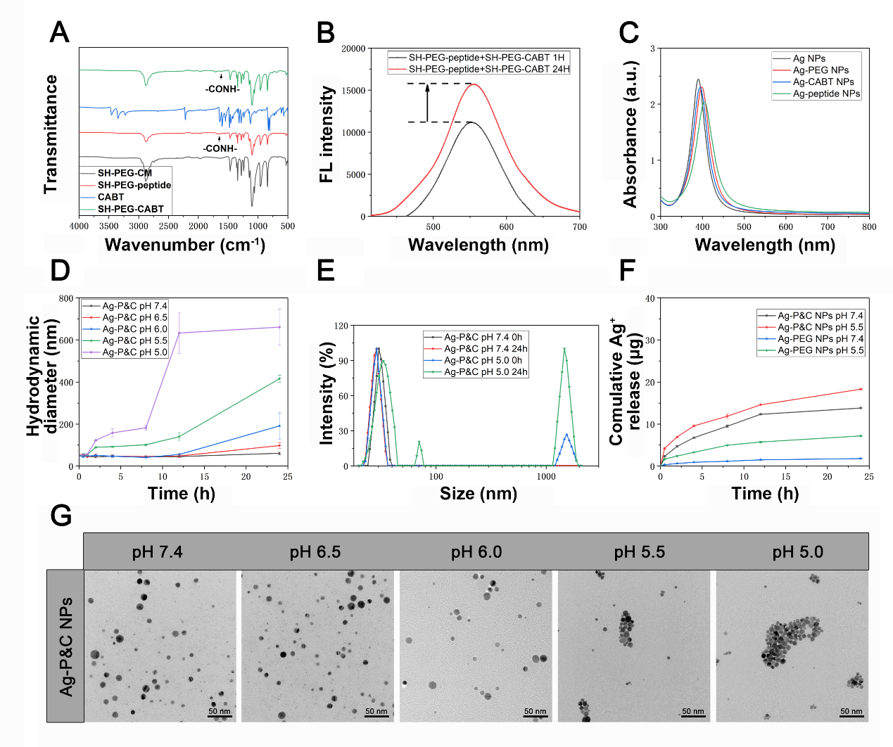 1)Ag-P&C NPs可以在酸性條件下,發生聚集,實現粒徑由小到大的變化。