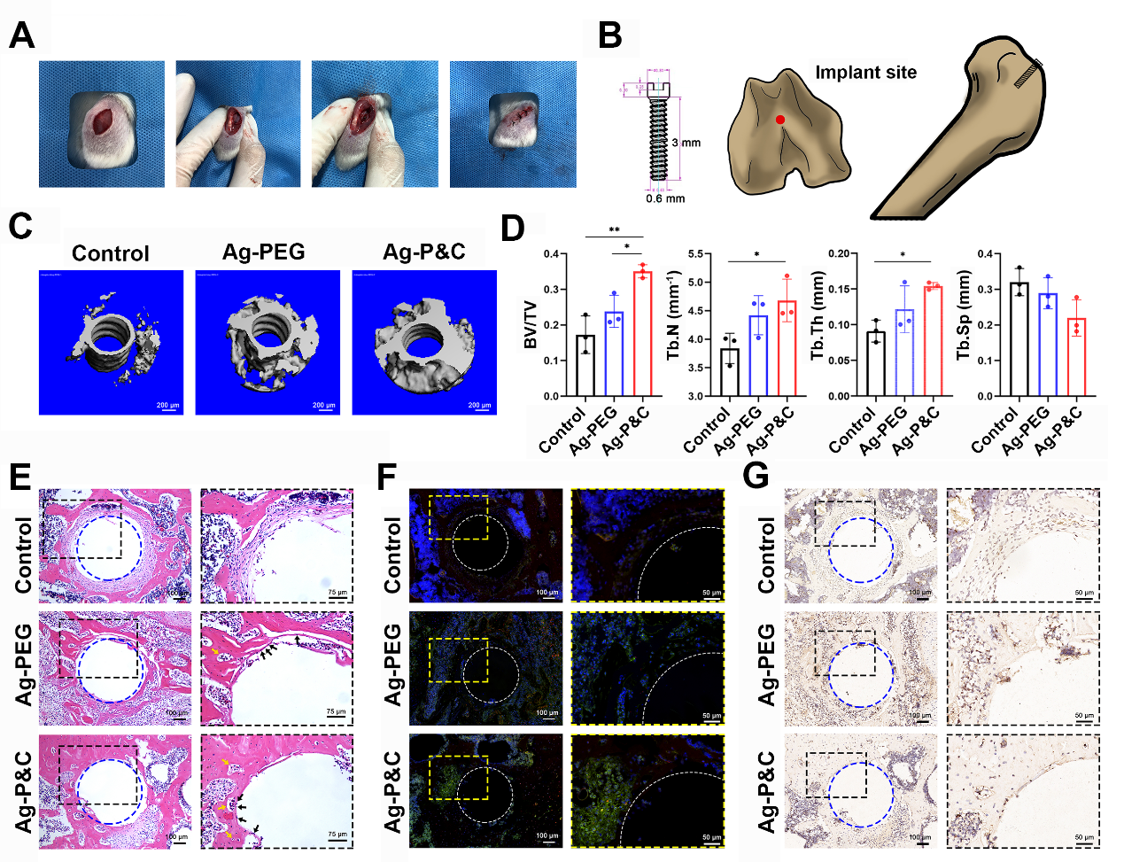 3)pH響應性自聚集銀納米粒Ag-P&C NPs可以有效清除污染種植體表面的細菌生物膜,且去污處理后的種植體擁有良好的成骨、成血管能力。