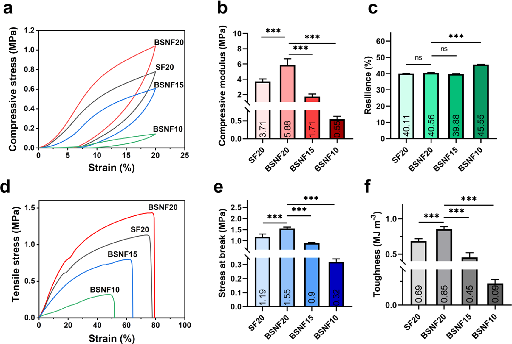 圖2 高強度絲蛋白納米纖維水凝膠的表征