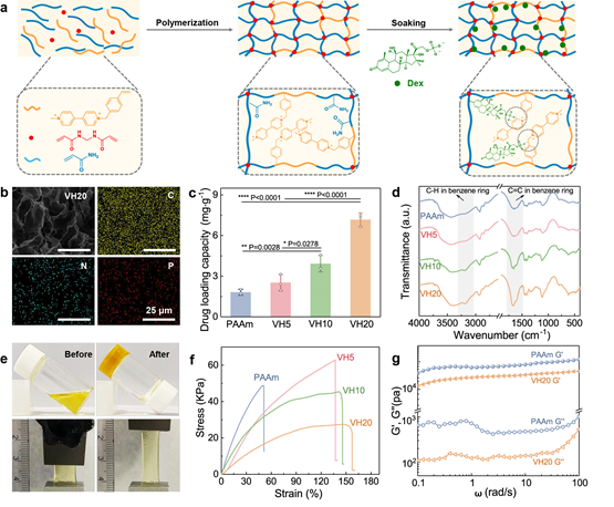 圖1 (a) 紫精基電致變色水凝膠的制備;(b-g) 電致變色水凝膠的基本表征。
