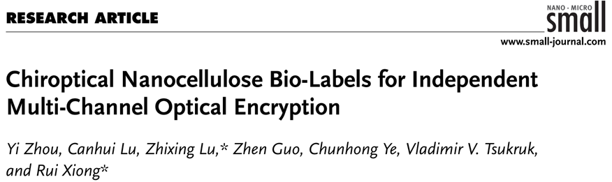 四川大學盧燦輝教授/熊銳特聘研究員 Small: 用于獨立多通道光學加密的納米纖維素手性光學標簽