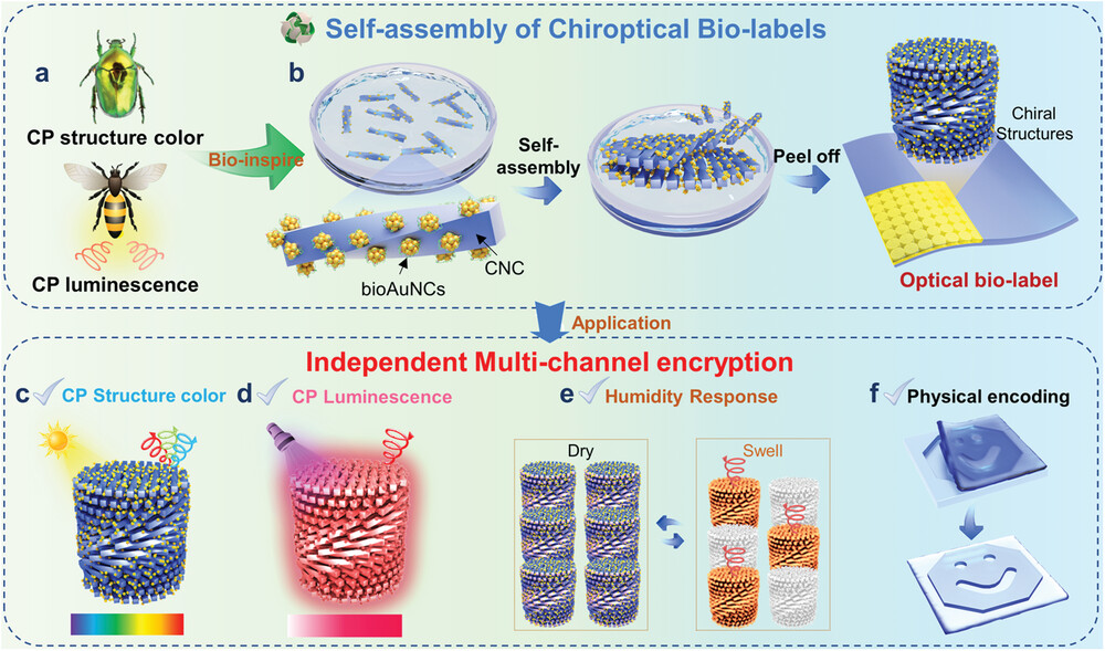 圖1:多通道加密的手性光學生物標簽的自組裝示意圖