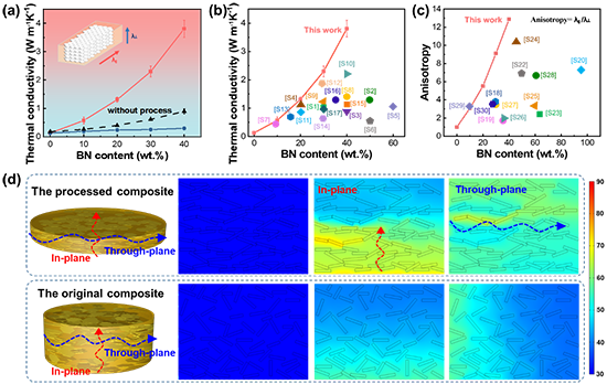 圖3. 復合材料的各向異性導熱對比、有限元模擬結果