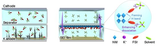 圖1 PEP-NM隔膜抑制鉀枝晶生長的相關機制。