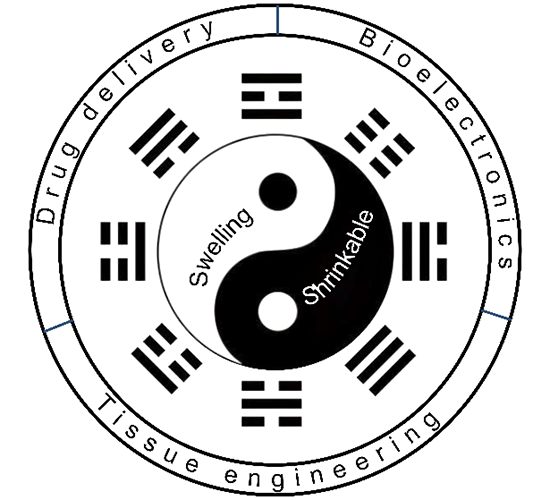 水凝膠的溶脹-收縮性能在生物醫學領域引起了廣泛的興趣。例如,溶脹有利于吸收傷口滲出液、營養物質和代謝物質傳輸、藥物擴散和釋放。然而,在組織粘合劑、內部軟組織傷口愈合,以及生物電子學領域,非溶脹水凝膠由于其尺寸穩定而發揮了非常重要的作用。此外,水凝膠的收縮行為可用于收緊創面,促進傷口閉合,以及用于增強水凝膠支架的分辨率,還可用于將截留藥物推出,促進藥物釋放。