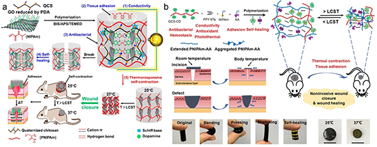 圖20 多功能PNIPAm混合水凝膠敷料通過熱響應自收縮促進傷口愈合