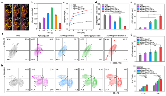 圖 5. ADPAH@AOT響應腫瘤處H2O2聚合反應的發生及其激活光熱免疫治療的表征。