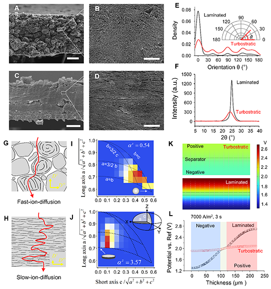 大規(guī)模制備具有高密度和高離子電導(dǎo)率的電極對于高體積能量和功率密度緊湊型電容式儲能技術(shù)至關(guān)重要,但也極具挑戰(zhàn)性,因?yàn)楦呙芏群透唠x子電導(dǎo)通常難兼顧。特別是以石墨烯為代表的二維材料,在毛細(xì)力和π-π相互作用下傾向于致密平行堆疊,導(dǎo)致離子難以有效進(jìn)入層間、離子擴(kuò)散路徑長且曲折,限制了石墨烯電極的高能量和高功率能力。這一問題在大厚度電極上尤為明顯,制約了石墨烯電極在儲能領(lǐng)域的實(shí)際應(yīng)用。