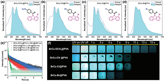 圖2. 基于1-溴咔唑衍生物摻雜的PVA薄膜的室溫磷光性質