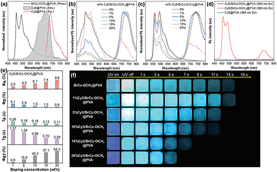 圖4. 磷光共振能量轉移體系C與/BrCz-OCH3@PVA的光物理性質