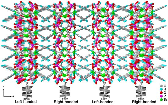 總的來說,該研究工作利用溶劑熱法,由非手性單體成功制備了首例非碳主鏈螺旋聚合物的單晶。結構分析表明,同手性螺旋聚合物鏈(右旋或左旋)通過多個氫鍵相互作用形成片狀二維層;左旋鏈層和右旋鏈層通過弱氫鍵交替堆疊在一起,形成三維超分子結構。該螺旋聚合物晶體在大多數常見溶劑中表現出高穩定性和高熱穩定性。此外,獨特的結構使其具有良好的雙折射特性。該成果通過在傳統碲氧鏈中引入角型陰離子,建立了新型螺旋非碳主鏈聚合物,突破了傳統線性碲氧鏈的瓶頸,為未來開發更有前景的螺旋聚合物提供了新的策略。