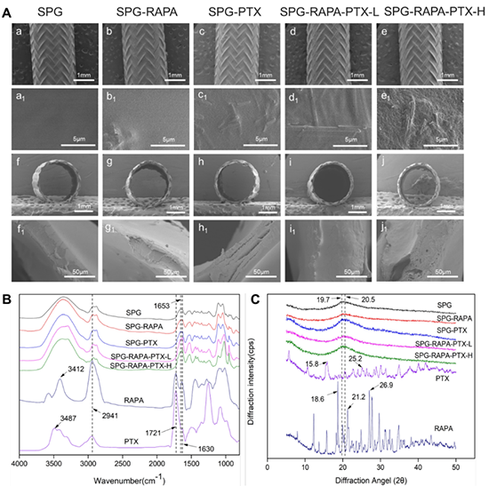 輸尿管狹窄是泌尿系統中的常見病癥之一,若得不到及時治療,會引發腎積水、尿毒癥和腎衰竭等各種并發癥。輸尿管支架是臨床中治療輸尿管狹窄常見的植入材料,但由于目前臨床上應用的輸尿管支架不可降解、生物相容性較差且不具備抗狹窄功能,術后愈合效果差。為此,他們設計了具有抗狹窄功能的復合結構載藥輸尿管支架。采用聚對二氧環己酮(Polydioxanone, PDO)單絲編織了支架骨架材料,并以絲素蛋白(Silk fibroin, SF)為基材搭載了雷帕霉素(Rapamycin, RAPA)和紫杉醇(Paclitaxel, PTX)兩種抗狹窄藥物; 該支架具有良好的藥物緩釋性能,對成纖維細胞和平滑肌細胞均有顯著抑制作用。大鼠體內生物相容性顯示,該支架能夠抑制成纖維細胞的過度生長和膠原沉積,從而達到抗狹窄的目的。