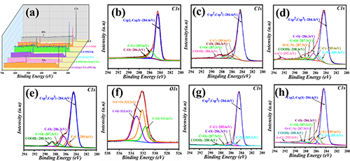 基于上述背景,大連理工大學蹇錫高院士團隊在碳纖維表面引入了納米粒子(GO@CNTs)和自主研發合成的高性能熱塑性樹脂聚芳醚腈酮(PPENK),如圖1所示。GO和CNTs 主要由具有sp2雜化軌道的碳原子組成,形成高度穩定的C-C結構,從而具有優異的強度和剛度。此外,在高溫下,具有協同增強效應的剛性結構(GO@CNTs)充當錨,顯著增強了CF和環氧樹脂之間的機械嚙合作用。PPENK含有非共平面扭曲鏈的二氮雜萘酮(DHPZ)結構,賦予了其高的玻璃化轉變溫度(260-306 ℃),也給予了材料高強度、高模量以及優異的耐熱性能。然而,與納米材料GO@CNTs相比,其剛性和模量較低。因此,PPENK可以作為柔性結構充當連接剛性結構GO@CNTs和環氧樹脂之間的橋梁,有效地彌合了復合材料界面區域的模量不匹配的問題。這是通過在界面區域構建具有適度模量的梯度模量界面層來實現的,這有助于在高溫下將載荷從環氧樹脂均勻有效的傳遞到CF表面。